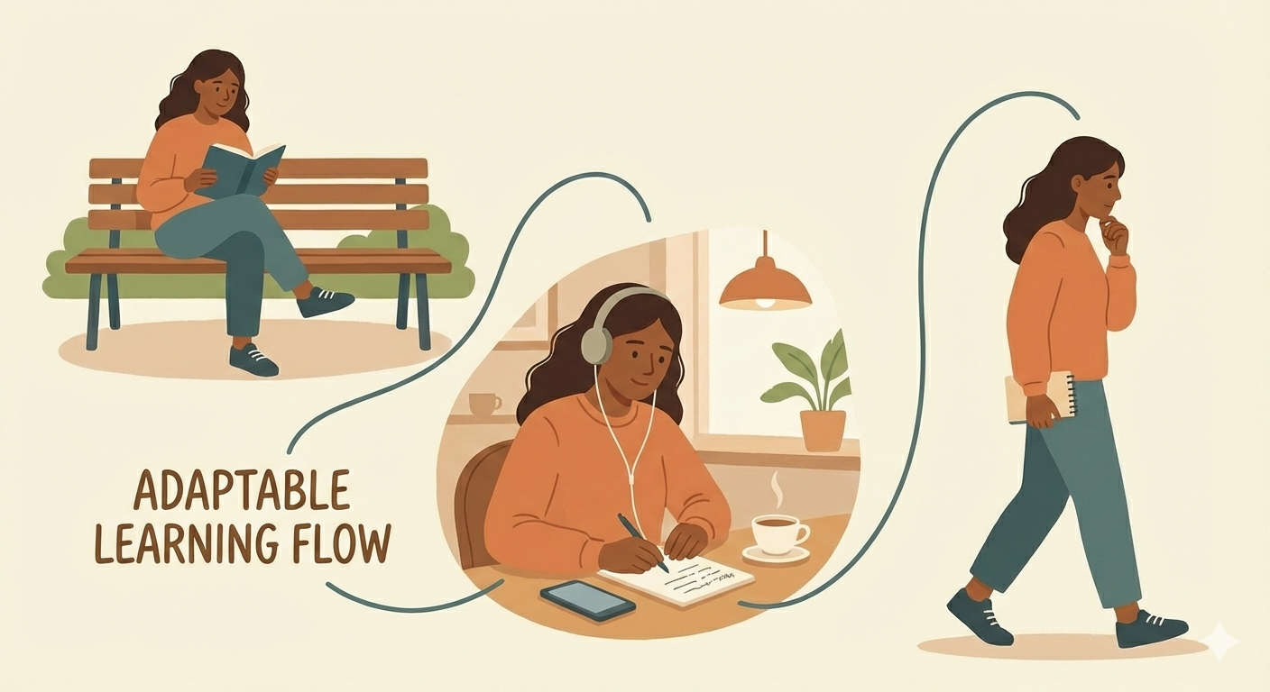 学習環境を固定しすぎない視点は、学習を特定の条件から切り離し、生活全体に馴染ませていくための考え方でもある。環境に縛られず、状況に応じて関わり方を変えられる状態が、学びを無理なく支え続けていく。
