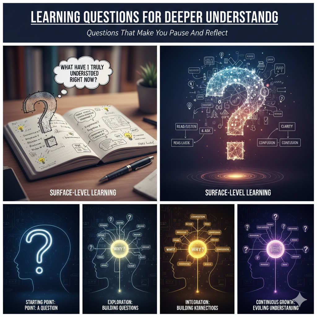 学習中に立ち止まるきっかけになる問いは、学習を遅らせるためのものではない。むしろ、流れを一度区切り、理解を確かなものにするための装置である。問いを挟む習慣があることで、学習は量だけでなく、質としても積み重なっていく。